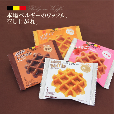 ベルギーワッフルの「マネケン」です。ベルギーワッフルを、初めて日本に紹介した時の人々の反響を忘れることなく、これからも、いつまでも愛され続けるよう、心をこめてベルギーワッフルをお届けしていきます。