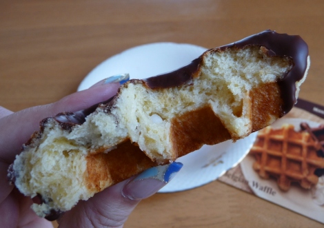 いつも楽しみにしているマネケンの限定モノ 今回のチョコレートワッフルもめちゃおいしー♪(´∇`) 去年出ていたものはビターチョコだったんだけど、今期はミルクチョコになって、さらに万人受けする味になったかも チョコはすっごくたっぷりコーティングされているので、チョコ好きにはたまらない♪♪… 2012/03/18