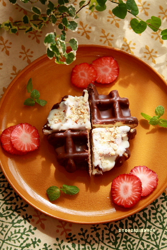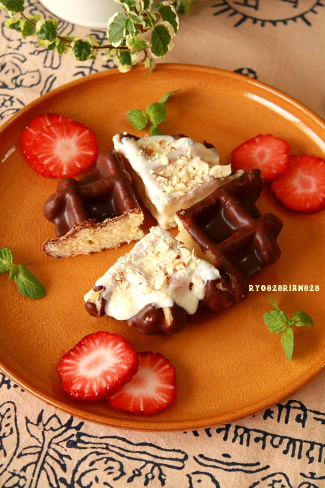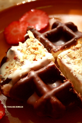 カカオの香ばしさとミルクのコクが広がるチョコレートをコーチィング。ベルギーワッフルとの相性もぴったりです。
