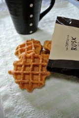 ベルギーワッフルの記事をオーブンで「二度焼き」し、贅沢なラスクにしました。パールシュガーのほどよい甘さとコク・・・絶妙な歯ごたえが自慢です。