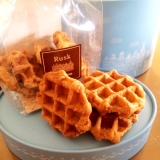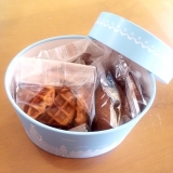 プレーンワッフルを二度焼きし、香ばしく仕上げたマネケンラスクとアーモンドのコクが広がるマカロンを詰め合わせました。