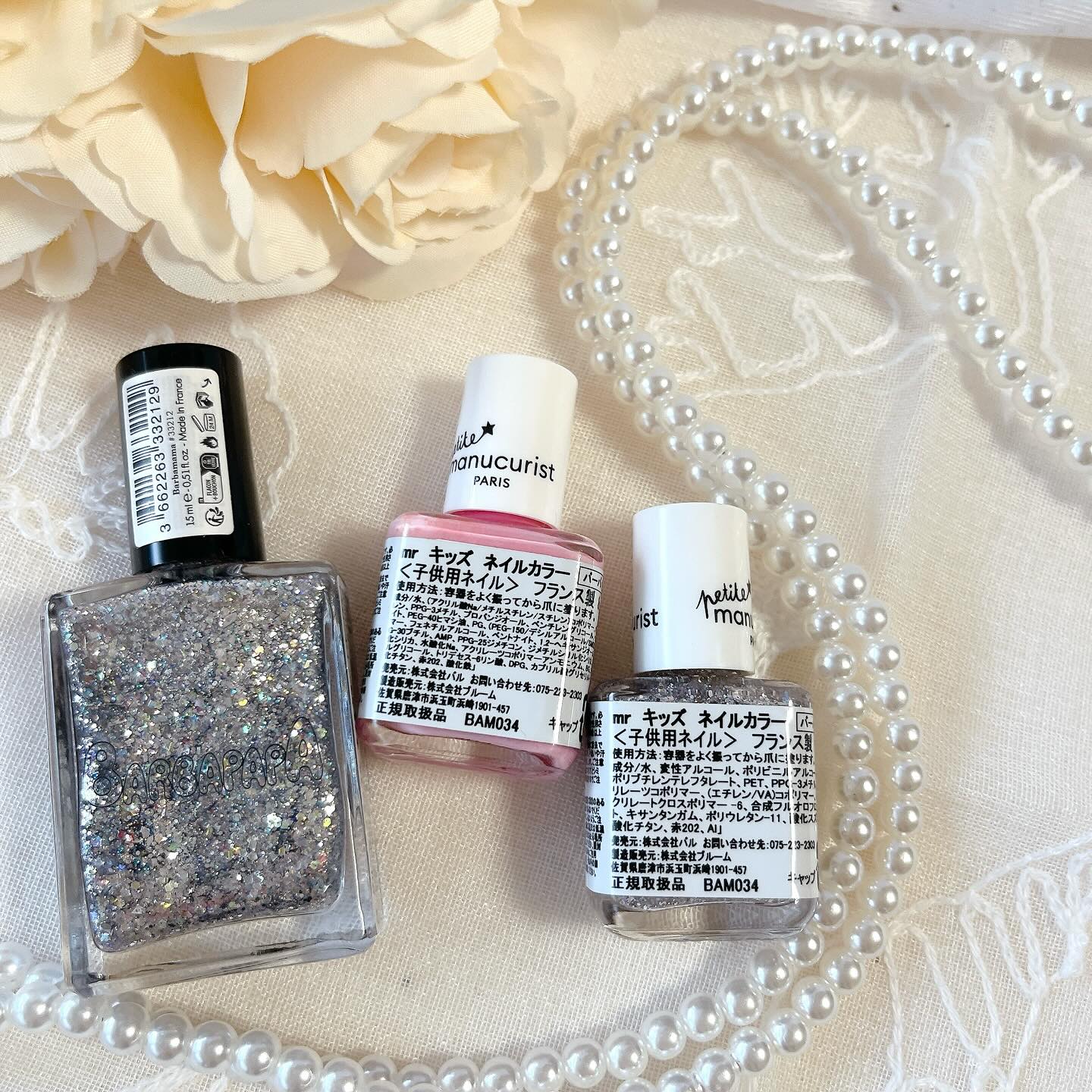 𓈒𓏸┈┈┈┈┈┈✾┈┈┈┈┈┈𓏸𓈒 マ二キュリスト💅 親子でお揃い♡ネイル 植物由来成分をベースに作られたポリッシュ 「グリーンシリーズ」と お水で簡単にオフできるキッズ用ネイル 「プティマニキュリスト」 をお試ししてみました💅 お水で簡単にオフ出来るので お休みの日やお出かけの日などに 気軽に使えるので便利です♡ 〝グリーンシリーズ〟も〝プティマニキュリスト〟も コシのある塗りやすいブラシで 細かなラメも大きなラメもどちらも 塗りやすく扱いやすいです キラキラなラメが夏にピッタリ✨ どちらも人・環境・動物に配慮して作られており、 ヴィーガン&クルエルティフリーの商品です 写真は薄く1度塗り💅 重ねて塗るとよりキラキラなネイルになります✨️ 他にもいろんなカラーがあるので 試してみたいです♡ ステキなご縁をありがとうございましたꕤ︎︎·͜· #PR #マニキュリスト #ヴィーガンネイル #子供ネイル #親子ネイル #monipla #manucurist_fan