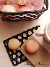 赤いマカロンはコラーゲン配合のマカロン! 白いマカロンは沖縄海洋深層水の塩を使った塩生キャラメルマカロン!