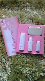 マリーンバイオ株式会社さんの コーラルコスメトライアルセットを試してみましたこんなにかわいいパッケージに入っています内容物:ソープ、ローション、ミルクローション、スペシャルエッセンスコーラルとはずば 2010/08/25