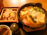 以前にも来店したことがある、三木市のにしなさん 住宅街の小さな食堂ですが、そのメニューの数は本当に驚きです! いくつあるのかしら? 優柔不断でない私でも、選べません(汗) 少しばかり寒い日だったので、悩んだあげく、鍋焼きうどんと赤飯の定食(たぶん880円)にしました 鍋焼きうどんとミニの赤飯が… 2011/10/31