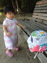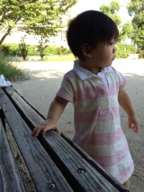 夕方近くの公園まで少しお散歩してきましたまだ日差しが強かったので帽子をかぶせていたけどすぐに取ろうとする娘ちゃん被ってくれないので、日陰で遊びました砂を掴むと口に入れようとするし、草を掴もうとするし好奇心がでてじっとはしてません最近は、伝い歩きもスピードアップ誰かに追いかけられてるの?ってくらい必死… 2012/09/19
