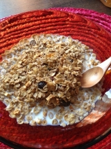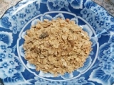 ハチミツでこんがり焼いたバーリーマックス大麦を、ドライフルーツや種子、ナッツなど混ぜあわせた「ミューズリー」というシリアルの一種です。全粒穀物は、 β-グルカン、水溶性繊維質が含まれている為に コレステロールの低下を助け、 免疫システムを強化すると言われています。 その為、朝食に穀物をとることは、 健康な心臓を維持するためには 最も有効な選択肢の一つと考えられています。
