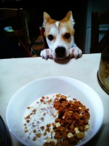 全粒 大麦シリアルモニターしたよ(﹡ˆ﹀ˆ﹡)♡ パッケージ可愛いね(๑•ั็ㅂ•็ั) 匂いはココナッツのいい匂い♥ 大麦が噛みごたえあって、たまにベリーの甘酸っぱい味がしてきて美味しかった♪ 準備してたら犬が『僕のは?』ってやってきた!笑 あなたのはないですよー((((♥´艸… 2014/05/08