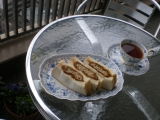 先日当選していた「チーズのロールケーキ」を 旦那ちゃんの誕生日に食べた 冷蔵庫で解凍して切り分けました 写真のようにクリームがたっぷり でもうっさは切るのが「へたっぴ」で み見た目が悪くなっちゃった でもすごく好みの味! 甘さ控えめなので子供にも食べさせました … 2009/11/06