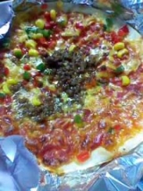 ピザが好き 自分で作るといつもの具材でいつものピザになってしまうけど これは、タコスピザ! 夏にもぴったりなピリ辛で刺激的、ビールもハイボールもすすむメキシカンなお味 クリスピーな生地に赤と緑のピーマンと黄のコーンをちりばめ、ポイントのスパイシーなタコスミートをバラバラッと ビリ辛の… 2013/09/02