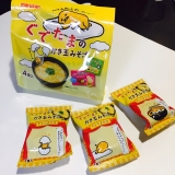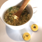 「ぐでたま」をイメージした、即席の美味しいかき玉みそ汁です。