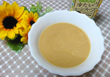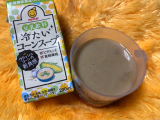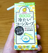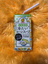 クラッシュコーンが入った豆乳飲料のコーンスープ。