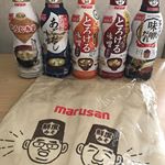 ■マルサンアイ『鮮度みそ5本セット&エプロン』 だし香るとろける味噌 あわせ赤だし国産原料100%みそ使用 あごだし、 鮮度のこうじみそ、とろける味噌だれ 八丁味噌使用各1本と 『鮮度ウィッチマン』のイラストがデザインされたエプロンのセットです 鮮度みそシリーズは業界初の鮮度ボトルを採用した、… 2019/09/15