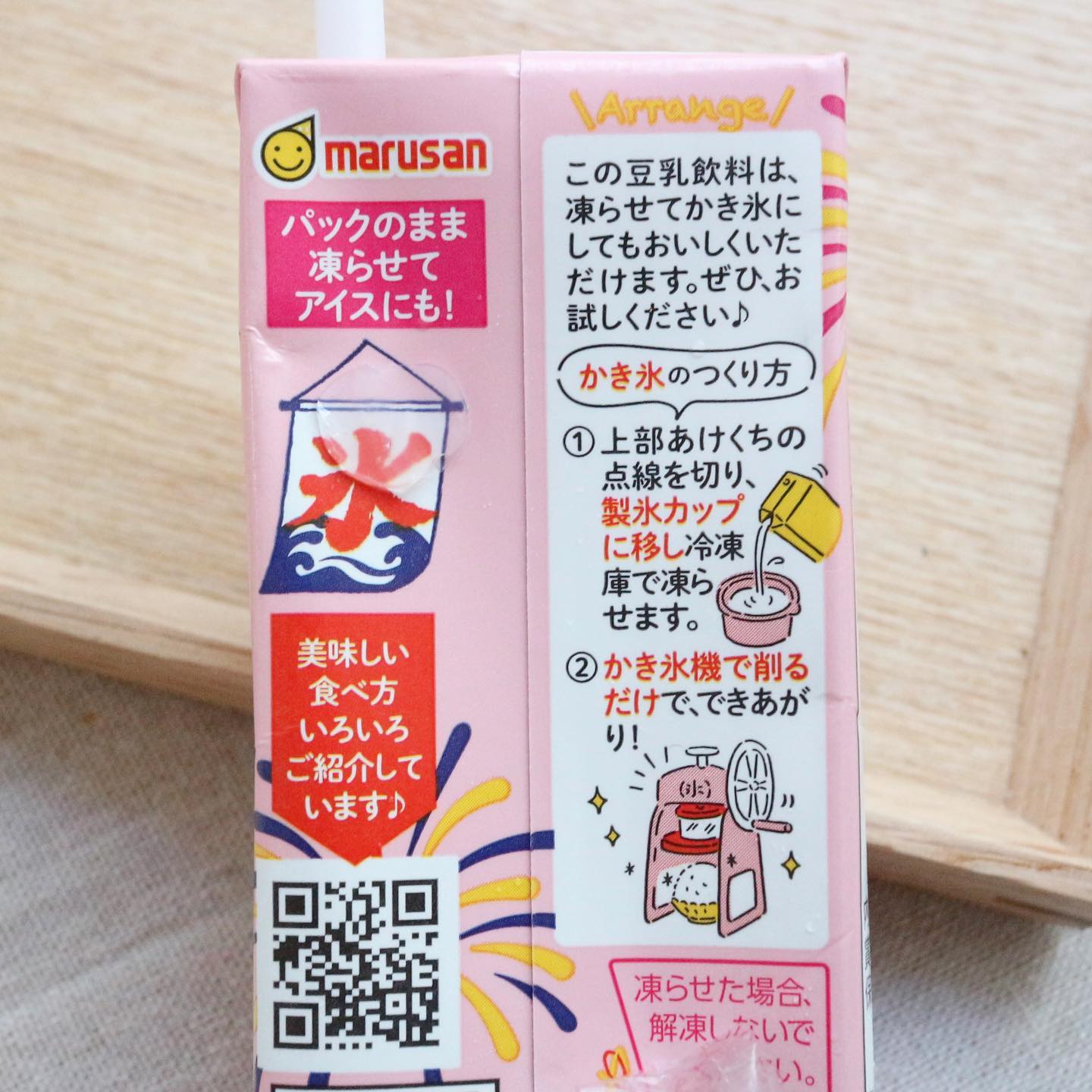 豊かな香りと濃厚ながらやさしい甘さのれん乳いちご風味の豆乳飲料です。 乳成分を含んでおりません。 飲用はもちろんのこと凍らせて美味しいかき氷も作ることができます。 アレルギー物質 大豆