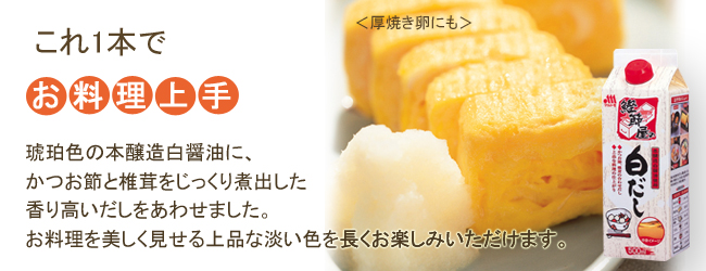 本醸造白醤油に、かつおだしと椎茸だしを合わせました。
