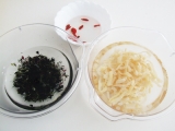 内容量:くらげ60g、海藻ミックス(わかめ・茎わかめ・赤杉のり・青杉のり・糸寒天)8.3g、クコの実1.4g)