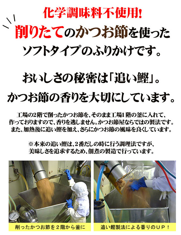 削りたてのかつお節を使った鰹節屋ならではの風味豊かなソフトふりかけです。