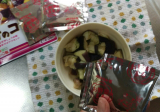 2)電子レンジ500Wで5分加熱する。