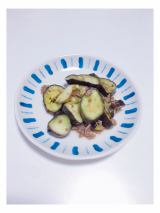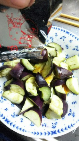 3)なすが熱いうちに本品1袋をかけ、全体に味が馴染むようによく和える。