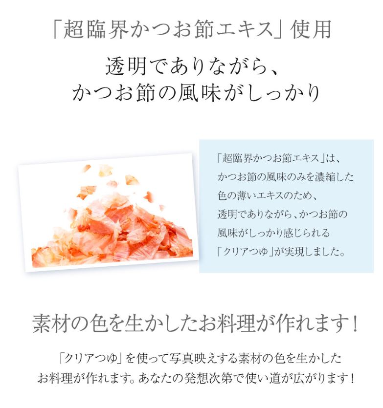 ◆マルトモ100周年を記念して新発売した限定商品、業界初の透明つゆ「クリアつゆ」