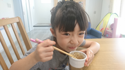 ✔かつお節を食べているこどもの写真