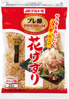 「プレ節Ⓡ」を、ふわふわっとやわらか食感の薄さ25ミクロンに削りました。だしとりにもトッピングにも最適な削り節です。