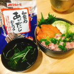 . ✩⡱海鮮丼 (ネギトロとサーモン) ✩⡱水菜とわかめのお吸い物 インスタグラムの調子が悪く、投稿ができなかったので昨日の夕ごはんです🙏 どうしても生魚が食べたくなってしまい、ネギトロとサーモンを買ってきました🐟 マルトモさんからモニターで 「和食の力あごだしパック」をいただいたので、 お魚に合うお吸い物も作りました💗 だしパックで取ったお出汁に、乾燥わかめを入れて醤油をひとたらし。 水菜を入れて少しだけ煮たら完成。 調味料は醤油しか入れていませんでしたが、あごだしの風味が豊かで、それだけでとても美味しかったです☺ 旦那さんも 「うまい。」と何度も言いながら食べてくれました💗 # 夕ご飯 #二人暮らし #自炊 #お料理好きな人と繋がりたい #おうちごはん #海鮮丼 #モニター #和食の力 #マルトモのだしパック #料亭の味 #あごだしパック #マルトモの新商品 #monipla #marutomo_fan 2021/05/13