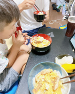 ・内容が難しい場合もありますので、特に低学年のお子様には、保護者の方が一緒に読み合わせ、説明をお願いいたします。また、調理工程は保護者の方が責任をもって立ち会ってください。