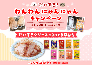 5名 2026年3月1日まで ねこちゃん・わんちゃんのための安心安全おやつ「だいすきシリーズ」の中から1品! |