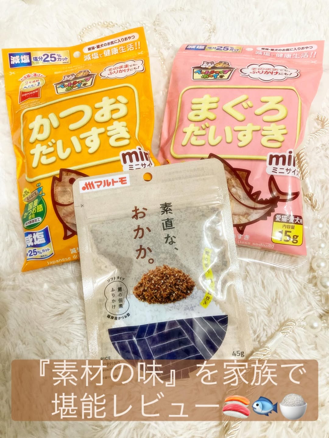 🕊𓂃 𓈒𓏸◌ ✼••┈┈••✼••┈┈••✼••┈┈••✼••┈┈••✼ マルトモ株式会社様より、愛猫用おやつ2種と、人間用のふりかけをモニターさせていただきました!🎉 素材の味を大切にしたシンプルさが魅力。愛猫も私も、食卓が豊かになりました! 🐟 【かつおだいすき】 かつお節をそのまま削った、ザ・おやつ! 開封した瞬間から香りが良く、うちの子も興奮気味に駆け寄ってきました😊 細かく砕いてフードのトッピングにも使っています。食いつき度No.1✨ 🍣 【まぐろだいすき】 まぐろの旨味が凝縮された、贅沢な一品。カツオとはまた違う、まろやかな風味で、ゆっくり味わって食べているようでした。新鮮なまぐろを食べている気分になれるかも!? 🍚 【素直な、おかか】 こちらは私たち人間用のふりかけ。醤油を一切使用せず、かつお節本来の旨味と風味だけを味わうシンプルな逸品です。 炊きたてのご飯にかけると、フワッと豊かな香りが立ち上ります。 おにぎりやおひたしにもぴったりで、素材の良さを改めて実感しました! 愛猫も飼い主も、マルトモさんの「素材へのこだわり」で幸せな食卓に! 健康に気を遣う方にもおすすめです。 #PR #マルトモ株式会社 #かつおだいすきファンクラブ #かつおだいすき #大切な家族のために #monipla #marutomo_fan