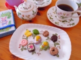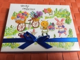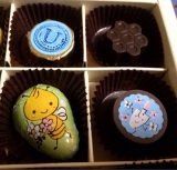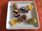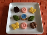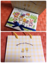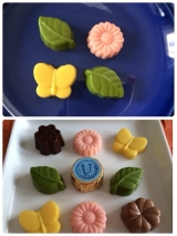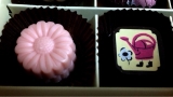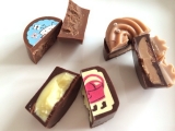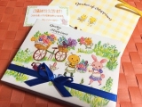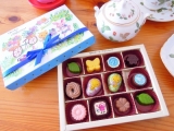 野原でひらくお花屋さんのイラストが描かれたパッケージには、お花の形のプレーンチョコレートやハニーレモンフレーバーのチョコレートなどを集めました。
