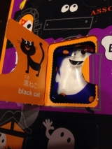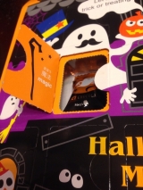 】株式会社メリーチョコレートカムパニーよりこんな可愛い包装紙でハロウィンマジックが送られてきました♪1つ1つ扉がついていて、クッキーチョコキャンディーなど入ってワクワクどきどきご近所の子達と一緒 2015/11/18