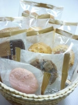ピンク色のメレンゲのお菓子、ナッツのたっぷり入ったクッキーなど優しい風合いに作り上げた焼き菓子を詰め合わせました。