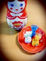 バレンタインにやってきたこの子株式会社メリーチョコレートカムパニーさんのショコラーシカ三姉妹の長女エリーナ好奇心旺盛な我が家のマトリョーシカがさっそく集まってきてあっという間にお友達になってました中にはおいしいチョコレートがいっぱいショコラーシカは背中の一部が平らになっているので、こうやって… 2014/02/17