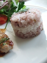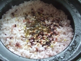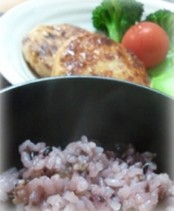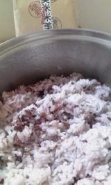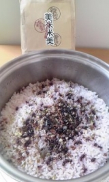 先日、メイコーポレーションさんからお送りいただいた、 『美米米美』 早速、これを使ってごはんを炊いてみようとおもいます お米を洗って、ひと袋 お水は、いつもの水加減+大さじ2 炊飯スタート 炊き上がり ほんのり紫色です^^ 均等になるように混ぜて… 2012/06/04