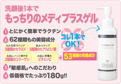 [2015/01/06] 【メディプラス】メディプラスゲル60日モニター募集 ♪ 洗顔後1本でOK!