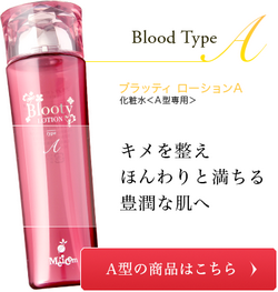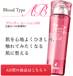 血液型別化粧品『ブラッティ』により、あなたの肌が求めるスキンケアをすることにより美しい素肌を実感してください。