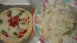 | 明治チキンときのこのピラフ(新商品) ・明治の牛乳、北海道十勝産生クリームとバターを使った ミルク感たっぷりのピラフ ・具材には鶏肉、ぶなしめじ、エリンギ、玉ねぎ、人参、コーン、 ピーマンを使用 ・7種類の具材とソースを合わせ混ぜ込みました |