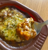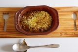 ●薄切り牛肉と細切りたまねぎを炒め、「銀座カリー」同様の 「ルゥ」、「カレー粉」、「二段仕込みブイヨン」を使用して 煮込んだ芳醇なカレーソース。 ●銀座ブイヨンとブイヨンオイルを使用して炊きあげた バター風味ピラフ。 ●コクのあるゴーダチーズと彩りの良いパセリをトッピング。 |