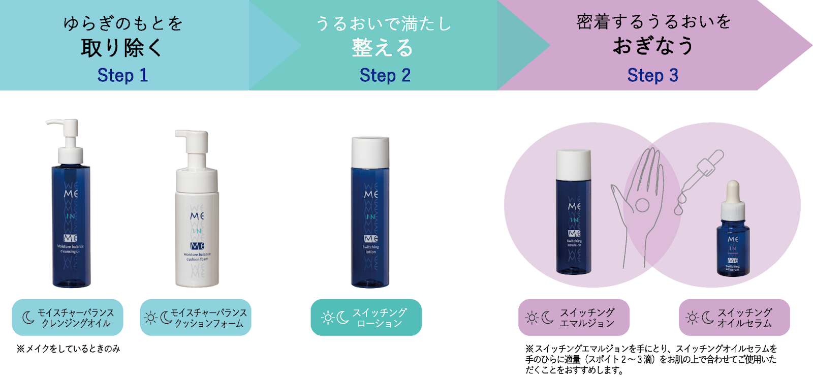 → 「me in me/ミーインミー」は、日々の忙しさで自分と向き合う時間を持ちづらいあなたに、「私だけの特別な時間」をお届けするスキンケアブランド。