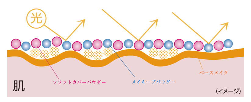 肌の凹凸に合わせて、平らで細かい粒子が肌表面に均一に密着