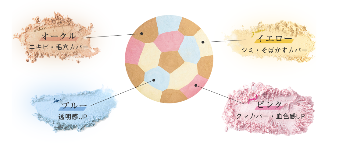 4色のカラーパウダーが溶け込んで肌悩みをしっかりカバーし