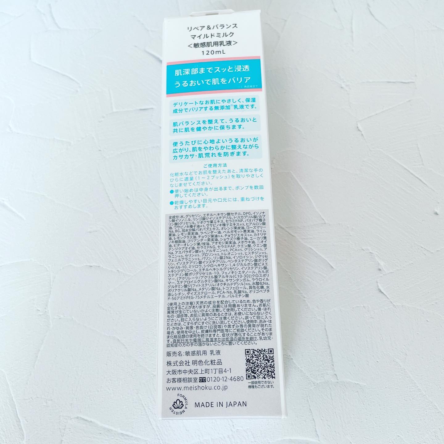 リペア&バランス マイルドミルク マイルドミルクのご紹介です♪ 朝晩の激しい冷え込みにくわえ 室内外の寒暖差も激しく より一層お肌がゆらぎ敏感に・・ そんなゆらぎ敏感肌のためのスキンケアです☆ 雪国に住んでいる私は お肌への寒暖差の影響をもろに受けています((+_+)) 寒暖差とマスクで肌荒れがすっごい。 必死にケアしていても 乾燥と赤みが特に気になる! こちらのマイルドミルク・・ point1 うるおいヴェール成分(保湿) ミツロウ×セラミド類似体 2種のオイルを絶妙なバランスで配合しており うるおいで肌荒れ・乾燥を防いでくれるんです☆ point2 安心の5つのフリー処方 パラベン、アルコール、合成香料、合成着色料、紫外線吸収剤 こちらは使用していないです☆ point3 特に気になる乾燥にはクリームとのW使いがおススメ! マイルドミルクを顔全体に伸ばした後に リペア&バランス マイルドクリームを 額、両頬、鼻先、顎先へ乗せて塗り広げる。 今回はマイルドミルクをお試しさせて頂きましたが 導入液、化粧水、乳液、クリーム こちらで全て揃えてライン使いすることもできちゃいます(^^♪ シトラス系の爽やかな香りでスッキリします。 とろみのあるテクスチャーなので スーッと伸びて塗り広げやすい。 乾燥にしっかりとアプローチしてくれるけど べた付きは無くて使いやすいです☆ こちらのマイルドミルクは 120ml で¥1.540円 (税込)なので 気軽にお試しできるのも嬉しです( *´艸`) #PR #株式会社明色化粧品 #リペアアンドバランス #リペバラ #repairandbalance #ゆらぎ敏感肌 #ゆらぎ肌 #ゆらぎ敏感肌の為のスキンケア #乳液 #マイルドミルク #monipla #meishoku_fan