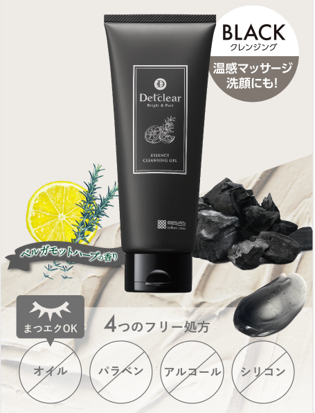 炭とクレイをW配合した温感クレンジングジェル。