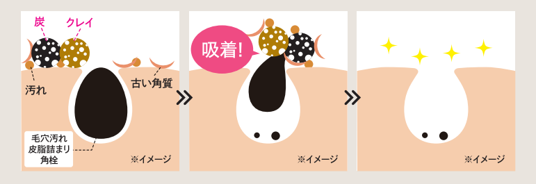 炭とクレイが持つ吸着効果で角栓や毛穴汚れをからめとり、毛穴汚れ・黒ずみをOFFします。
