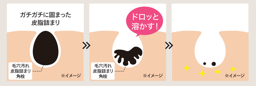 ●皮脂をドロっと溶かす「ディープクリアCPL」がガチガチ皮脂詰まりを溶かしてつるんと除去します。