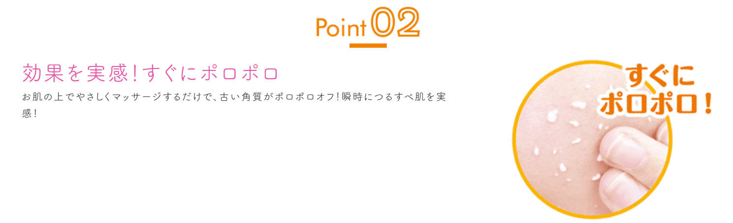 くすみやざらつきの気になる部分をマッサージすると、ポロポロと老廃物(古い角質)が落ちて、お肌の透明感がよみがえります。