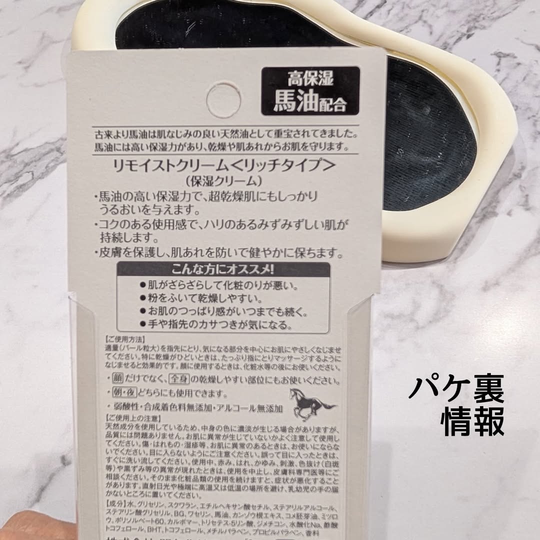 馬油感をたっぷり味わえる高保湿クリーム 【リモイストクリーム リッチタイプ】 昔、母が馬油使ってて、シンプルだけどほんとに潤いを補えるかんじがして、結構スキだったんです❤ 馬油は古くから、やけどやひびやあかぎれ等のお肌のトラブルにいいと重宝されている、馬の脂肪から抽出された天然由来のオイルなんだって🌟 高い浸透力と保湿効果があって、乾燥肌やかさつきのケア、手荒れやひび割れの予防 に最適だそう🥰 そんな馬油の良さをしっかり感じられる高保湿クリームが、このリモイストクリームです✨✨ みんな馬油って使ったことある? そんな馬油みたいなテクスチャで、とろんとしていて体温でするするとろけるかんじ💖 しっかりした保湿感とツヤ感を与えてくれるの🌈 わたしは、指先のささくれやかかとのひび割れの、超超頑固な乾燥にも使ってるよ🤗 満足のいく保湿感なのにベタベタしないのもポイント🫶香りも全然しないよ🙆♀️(馬の脂臭いかな?って思った人いる?🐎笑) ドラッグストアやAmazonで買えるよ♪ やばい乾燥のお守りコスメです💕 #PR #株式会社明色化粧品 #リモイストクリーム #保湿クリーム #乾燥 #ハンドクリーム #馬油 #スキンケア #保湿ケア #monipla #meishoku_fan #美容 #美容マニア #美活 #美容オタク #美容垢 #美容好きな人と繋がりたい