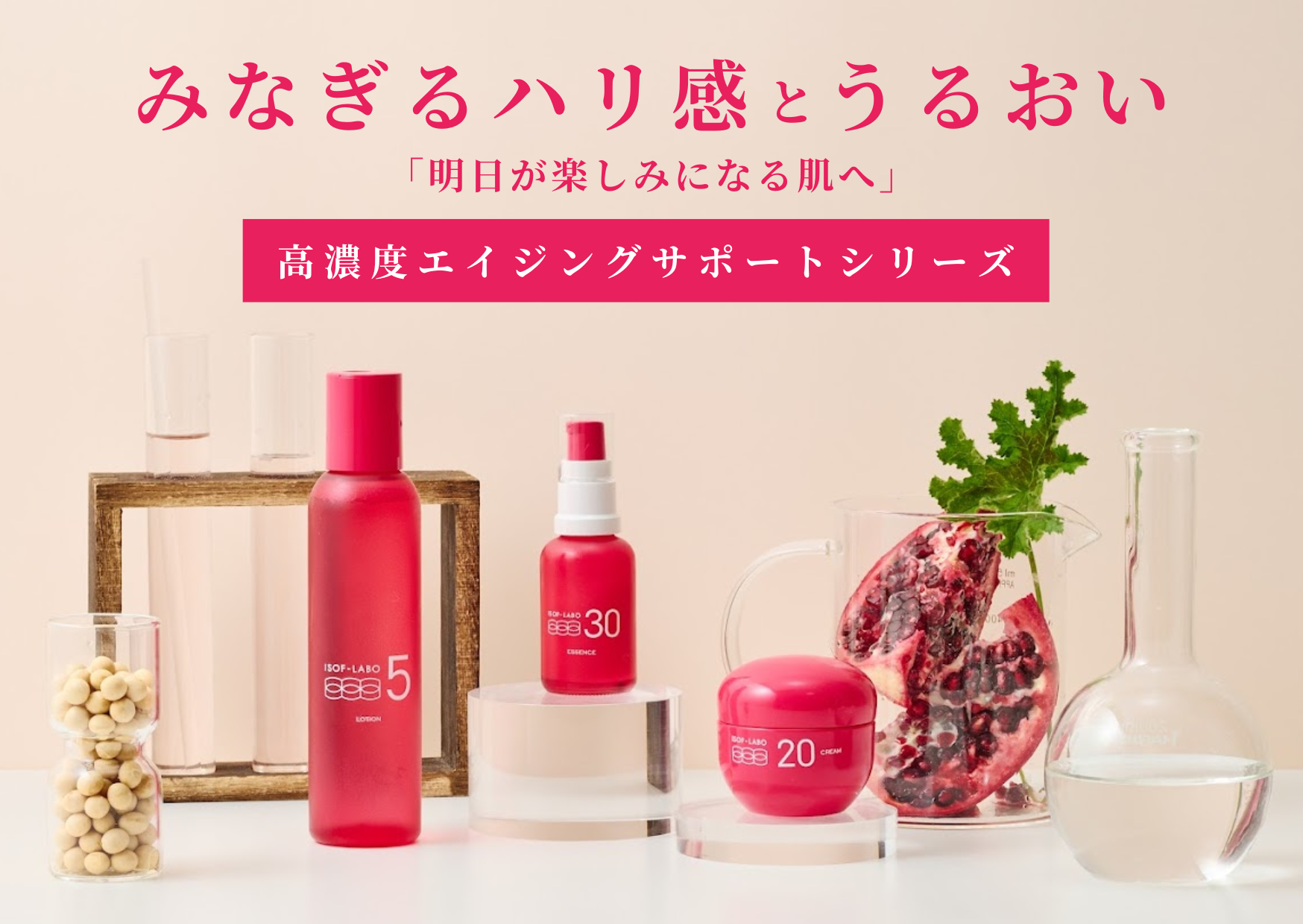 イソフラボン含有大豆エキス30%配合の美容液です。