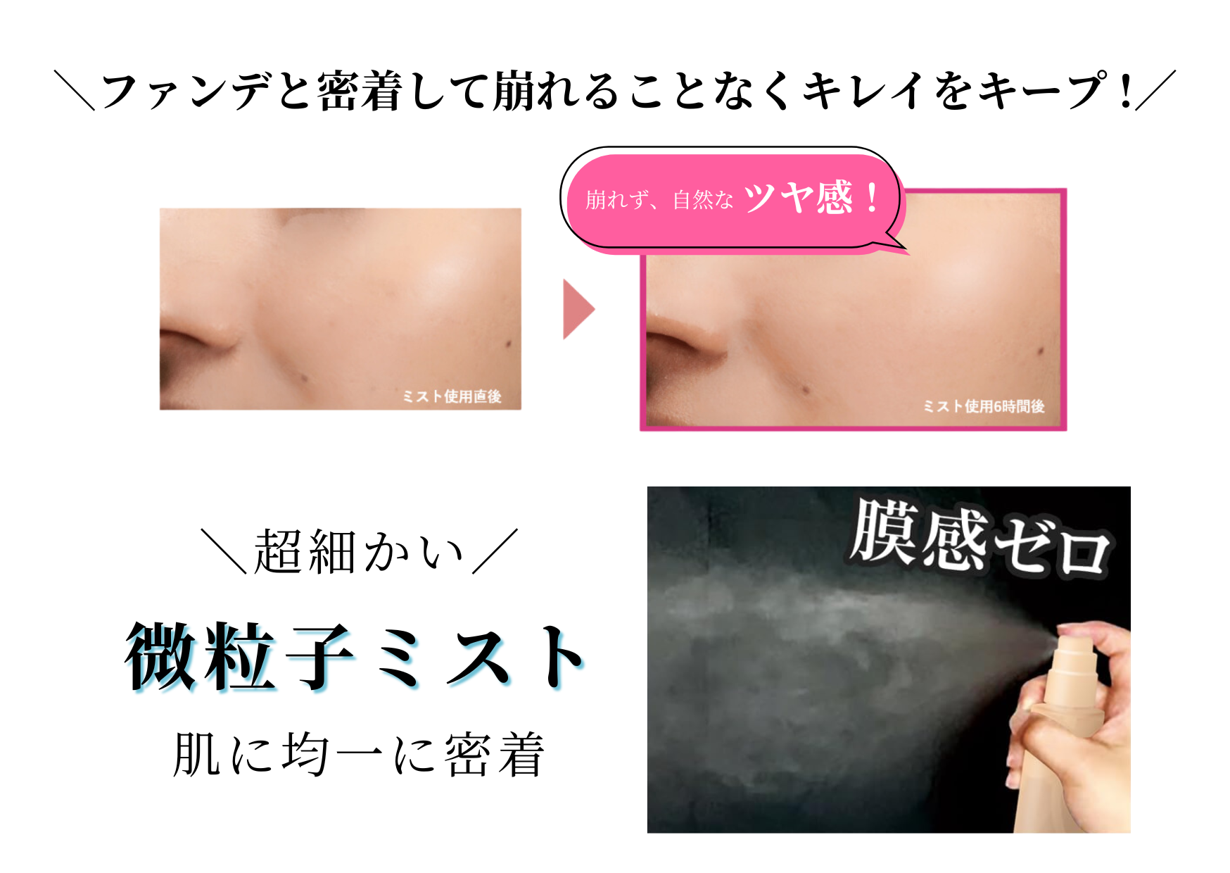 ■超微粒子ミストで肌に均一に密着